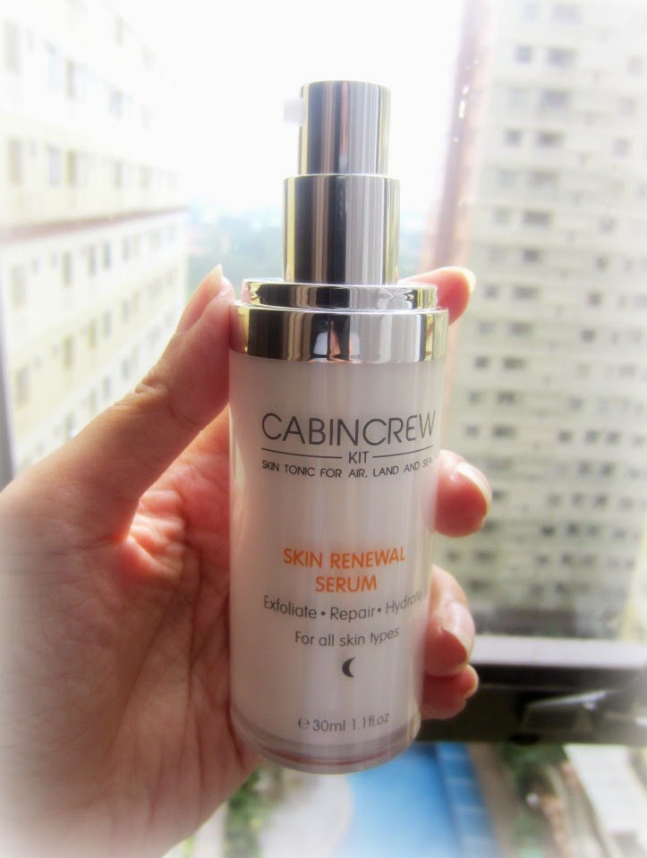 As you can see above, I am trying the Cabin Crew Kit Skin Renewal Serum that claims to help exfoliate, repair and hydrate the skin. It's just what I needed. A very nice coincidence, right when my skin needed a new serum to